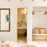 De gesitueerde in Agios Ioannis Diakoftis Villa Magdalena Mykonos heeft een badkamer, voorzien van een apart toilet en een douche. Een haardroger en handdoeken staan ook tot je beschikking.